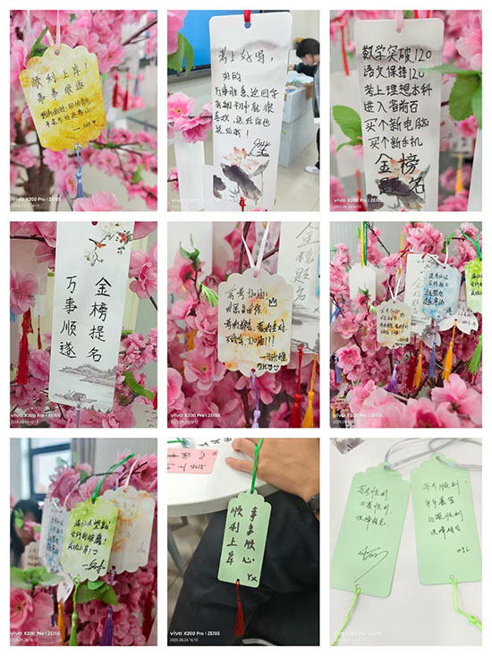 最后,同学们在精美的书签上郑重写下自己的高考目标和人生愿望。有的同学画上了理想大学的校徽,有的写下了激励自己的座右铭,还有的记录了父母温暖的寄语。当一张张承载着梦想的书签被挂上心愿树时,仿佛为每个梦想都装上了隐形翅膀。