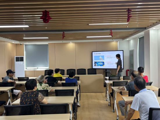 “王阿姨,医保卡异常是新型诈骗话术,千万别点陌生链接!”新碶社区教育中心向阳分中心内,网格员小胡正通过真实案例为老年居民讲解防诈技巧。这正是定期举办的“智慧助老+反诈”主题活动现场。