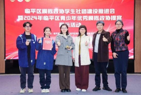 在临平模拟政协学生社团建设推进会暨2024年临平区青少年优秀模拟政协提案展示活动中,学校“荷”议社展示提案《关于完善社区公共健身器材使用及维护的建议》,通过情景剧演绎和汇报人吴文佳的PPT展示,生动形象地阐释了他们参与协商议政实践的成果。经过现场展示、答辩和评委打分,学院荣获展示金奖。