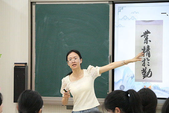 “业精于勤”乃千年古训,本节书法课聚焦这四个楷字的结体法则,以中国建筑、动漫等比喻汉字结构,引发联想,最终职教学子的楷书作品在展板上铺开,那些或端庄或稚拙的字体结构,正是千年法度与现代工匠的时空对话。