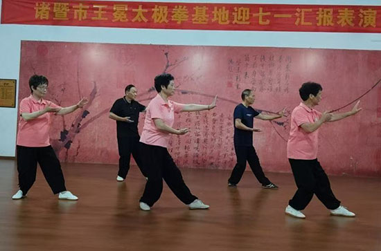 组织参加《王冕太极拳基地迎‘七一’文艺汇演》,节目以热闹的“威风锣鼓迎宾曲”开场,奠定了喜庆热烈的基调,全场紧扣太极拳,先后表演了32式、24式、16式、8式、42式等各式太极拳,充分展示了学员们学习后的扎实功底,行云流水的一招一式体现出学员们精湛的技艺,每一组的上场都赢得了观众们热烈的掌声。其中穿插演出了歌曲独唱《我的中国心》、京剧智取威虎山选段《共产党员》、越剧《金玉良缘》等21个节目,200多名观众到场观看,纷纷为精彩的节目点赞叫好,郭文英组织的演出能得到大家的认可,觉得很开心。演出结束后,参加汇演的人员与观众又为村关爱基金(爱心食堂)进行捐款,共得17178元。