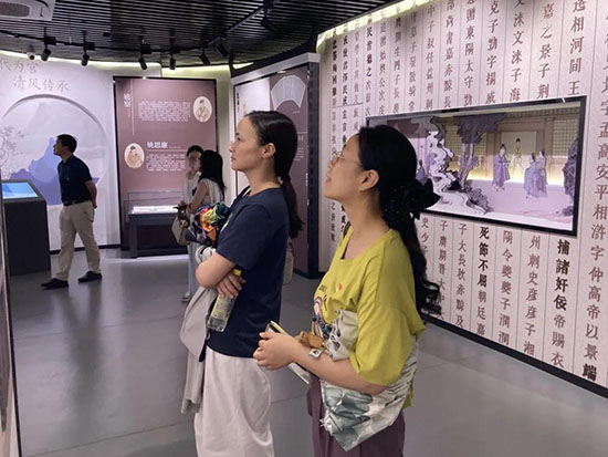 在“苕霅清风”展厅,党员们跟随讲解员的讲述,穿越历史长河,了解湖州历代地方官的清廉故事。那些与湖州地名紧密相连的清廉事迹、承载清廉思想的文物和诗文,让大家深刻感受到湖城深厚的清廉文化底蕴,为古代贤能的高尚品格所感召。