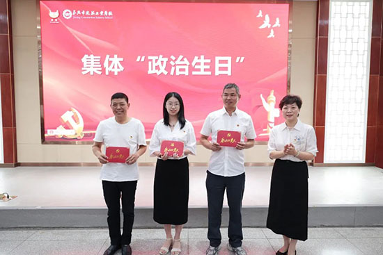 “我志愿加入中国共产党……”在集体“政治生日”仪式上,校党委书记范晓春为7月入党的几位党员颁发纪念贺卡,带领全体党员进行庄严宣誓。铿锵誓言在报告厅回荡,既是对入党初心的回溯坚守,更是对“为党育人、为国育才” 使命的郑重承诺,让党员们在政治仪式中强化身份认同,汲取奋进力量。