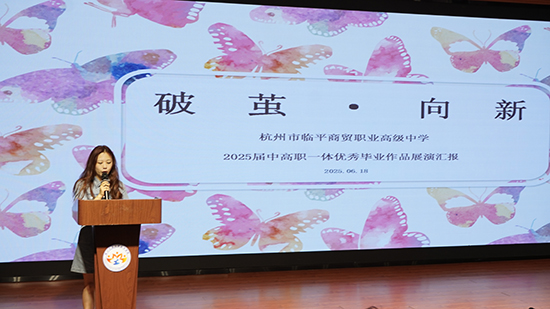 6月18日,浙江开放大学临平学院2025届中高职一体优秀毕业作品展演汇报在学校小剧场隆重举行。本次展演以“破茧·向新”为主题,分为四大篇章,全方位展现了学子们在专业学习中的沉淀、突破与成长。