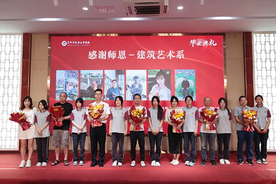 校党委书记范晓春,校党委副书记、校长李志文,99届校友、浙江公科固桥工程有限公司首席工程师王志良,副校长龚磊、葛魁、刘叶海出席典礼,厚生学院主任祝春钢、智能建造系主任柯建、建筑艺术系副主任侯暮云、工程管理系主任于海文、毕业班班主任、家长代表、优秀毕业生在鼎建主会场参加典礼,其他毕业生在各班教室收看视频直播。