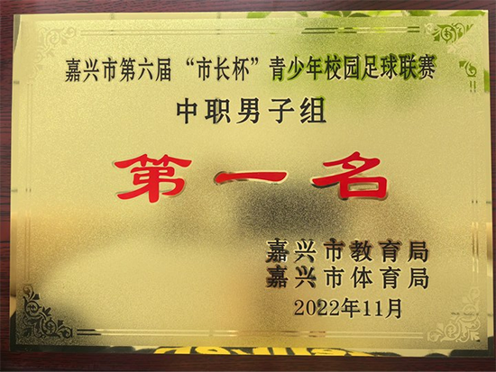 校男子足球队蝉联“嘉兴市青少年校园足球联赛中职组三连冠”,并代表嘉兴征战省级赛事,2024年更是在ZSFL浙江省第十四届中小学生校园足球联赛中挺进八强,创历史最佳成绩。