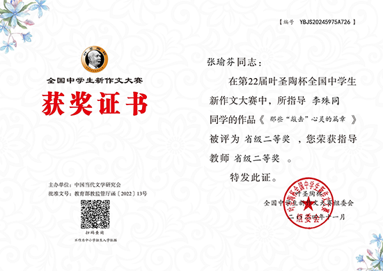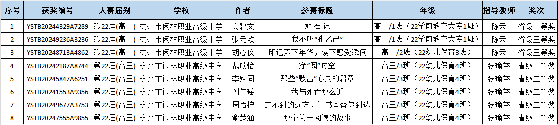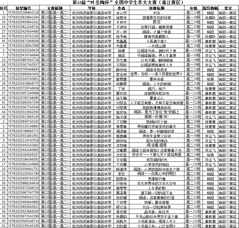 此次大赛的优异成绩,是学校语文教学改革和素质教育成果的生动体现。我们期待金心然同学在全国总决赛的舞台上再展风采,续写辉煌;更期待全体同学以获奖同学为榜样,在文学的沃土上深耕细作,让写作成为心灵对话的桥梁、思想翱翔的翅膀。愿闲职学子继续以梦为马,以笔为剑,在文学的星空下书写属于新时代青年的璀璨篇章!(杭州市闲林职业高级中学)