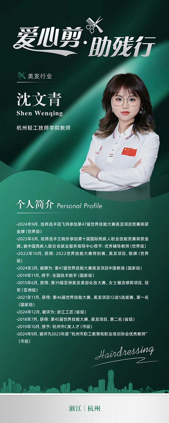 “公益是场双向奔赴,”沈文青道出众人心声。这份温暖共振正在扩大:团队在拱墅社区服务站,将每月10日定为“助残理发日”。沈文青老师手中这把曾闪耀赫尔辛基的剪刀,如今在街头巷尾修剪出更动人的生活图景。