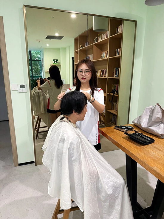 活动结束整理工具时,沈文青特意将两把剪刀留给社区志愿者。“这把平剪处理厚重发量,牙剪打造层次感”,她的讲解一如在学院授课般细致。窗外,刚理完发的听障老人打着手语感慨:“大师们手艺好,心更亮。”