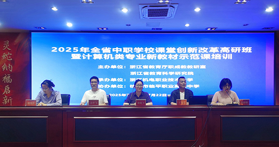 为全面落实浙江省新教材课程改革部署,促进中职计算机类专业课堂教学革新,强化新教材应用效能,2025年7月19日,全省中职学校课堂创新改革高研班暨计算机类专业新教材《计算机网络技术基础》示范课培训在临平职高正式揭幕,开展为期四天的研习活动。本次培训由浙江省教育厅职成教教研室与浙江省教育科学研究院共同主办,浙江机电职业技术大学承办,杭州市临平职业高级中学协办,来自全省各地市百余名计算机专业带头人、负责人及骨干教师参与。