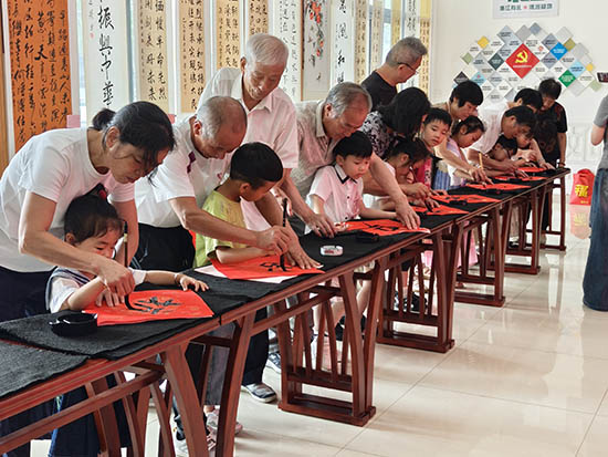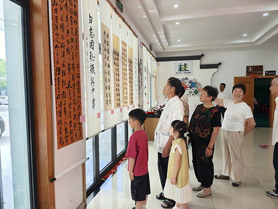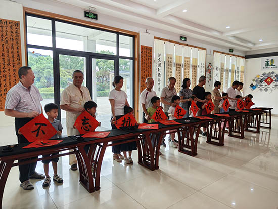开幕仪式上,10对“一老一小”代表同台书写本次展览主题——不忘抗战史 共绘中国梦,伟大的抗战精神和中华优秀传统文化通过笔墨在老幼两代人之间得到传承。本次展览共展出书画作品40余幅,处处体现作者对革命先烈的缅怀和对和平幸福生活的向往,展览将持续到10月上旬。