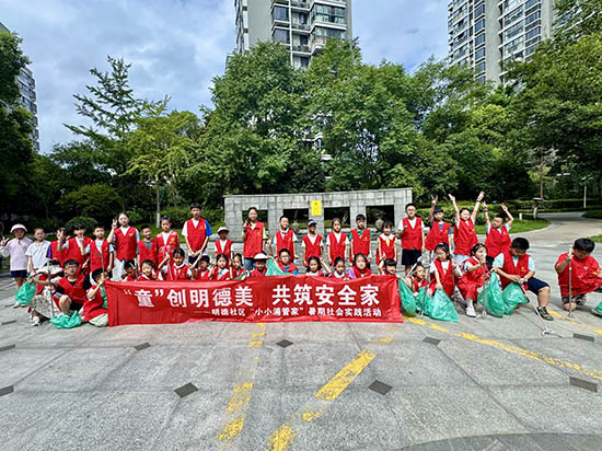 7月22日,杭州市滨江区浦沿街道明德社区“‘童’创明德美 共筑安全家——‘小小浦管家’”暑期社会实践活动火热启动。四十余名社区少年儿童主动化身家园“小管家”,以亲身实践为社区安全与清洁注入鲜活的“童”力量。