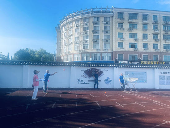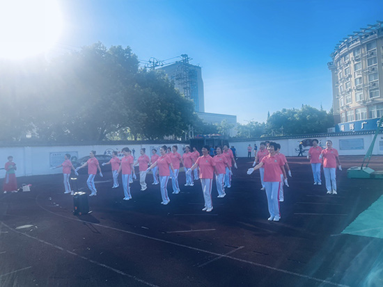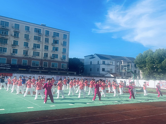 “今天我们齐聚一堂,共同迎来8月8日的全国第十七个‘全民健身日’和诸暨市第十八届全民健身节。全民健身、健康你我。为积极倡导健康向上的生活方式,提高我们的身体素质。今天我们组织大家在这里举行健步走、广场舞、太极拳、兜球和柔力球的全民健身日活动,再一次充分展示出体育和健身的蓬勃激情与无穷魅力……”诸暨市枫桥镇老年体协主席葛世良在枫桥镇老年学校田径场上作动员讲话。
