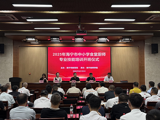 8月20日上午,2025年海宁市中小学食堂厨师专业技能培训班(第五期)在海宁技师学院正式拉开帷幕。本次培训为期5天,吸引了来自全市各中小学及相关餐饮单位的67名一线厨师参与。他们齐聚一堂,共同开启一场以“技能提升、安全护航、营养优化”为核心目标的专业学习与交流的新征程。