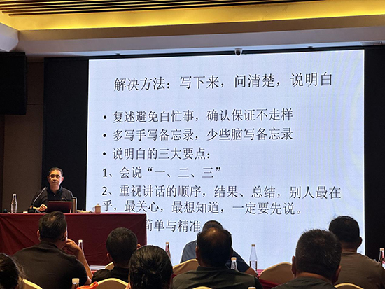 宁波市鄞州职业高级中学校党委卢科书记在培训中着重阐述了对学校发展的美好愿景,提出要努力打造一所“专业特色鲜明、育人成果丰硕、社会高度认可、人民非常满意的学校”。他强调办学必须突出重点、亮点和特色,同时要将学生成长与教师成长作为核心目标,推动学校的长远发展。卢科书记指出,中层干部是学校发展的关键力量,他们的能力素质直接关系到学校的整体发展水平。他分享了自己在不同学校积累的丰富工作经验,深刻阐述了干部能力培训的重要意义,并提出了以学生成长和教师成长为双核心的发展策略。通过分享具体案例和培训经历,卢科书记详细阐述了如何通过提升中层干部的能力素质来推动学校整体进步,实现专业特色鲜明、社会高度认可的教育目标。他还特别强调,在工作中要避免使用如“我以为”等模糊语言,并提出了“三忌三问”的工作改进原则,即忌主观臆断、忌推诿扯皮、忌敷衍塞责,要常问“为什么”“怎么做”“做得怎么样”,通过复盘和精准执行,强调创新与发展的必要性。他指出,创新是手段,发展是目标,唯有持续发展才能解决诸多问题,推动工作不断进步。