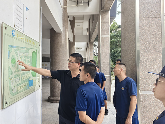 演练筹备阶段,学校校安办周洪良老师向消防指战员介绍了学校消防布局与开学后人员密集特点,消防指战员结合实际情况,制定专项方案。