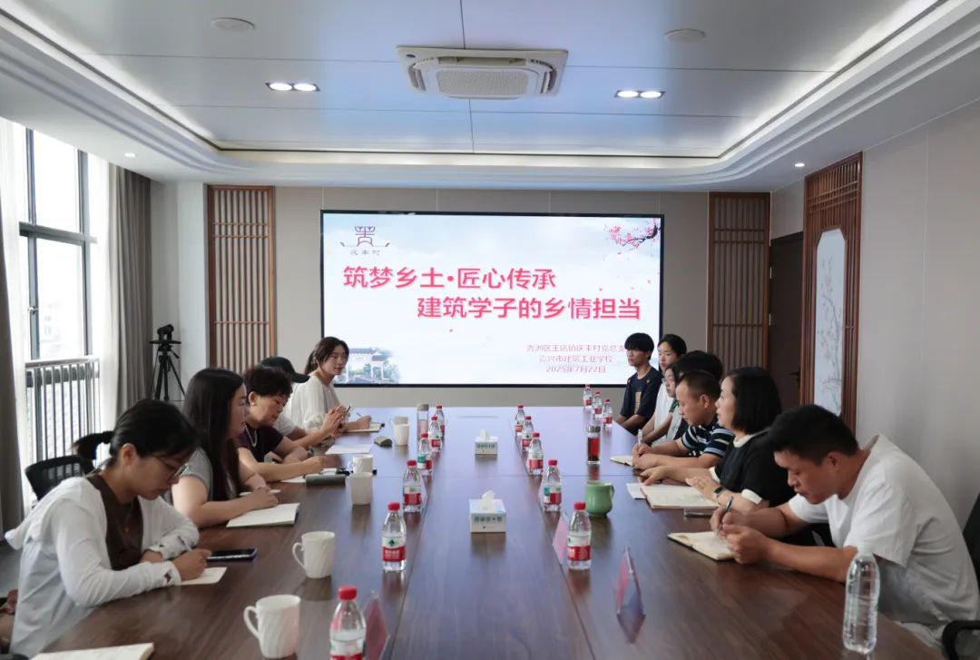 为挖掘乡村振兴中的思政育人资源,引导建筑学子厚植家国情怀、锤炼过硬本领。7 月 21 日,嘉兴市建筑工业学校党委书记范晓春带队,老书记孙云祥、思政课题组成员及王店镇学生代表等一行12人,赴全国文明村王店镇庆丰村,开展“筑梦乡土・匠心传承——建筑学子的乡情担当”主题交流活动。庆丰村党总支书记、村委会主任朱丽敏携村委相关人员热情接待,双方围绕党建引领校村协同育人、技能服务乡村建设等议题展开交流与合作。