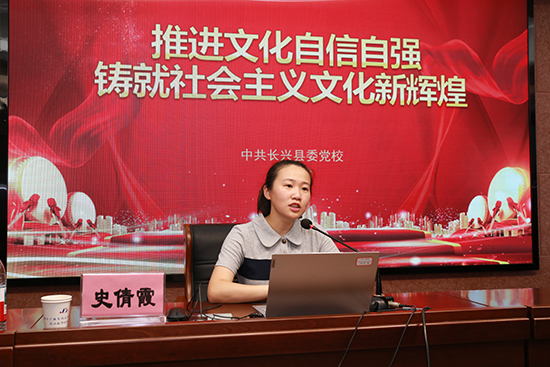 8月29日,长兴开大教师进修学院党总支组织开展8月份主题党日活动,特邀中共长兴县委党校史倩霞老师作专题党课辅导,主题为《推进文化自信自强,铸就社会主义文化新辉煌》。学院全体党员参加学习。