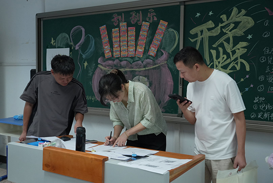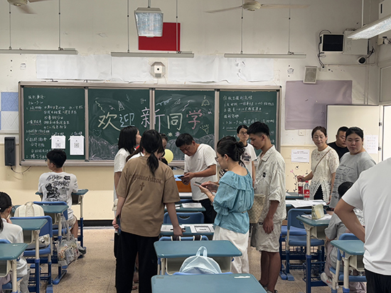 早晨,新生们在学长学姐的热情引导下,顺利完成报到手续。各班教室装扮一新,黑板上绘着创意的欢迎画,课桌上摆放着班主任精心准备的小礼物,处处流露着专业部大家庭的温暖;中午,老生们也精神饱满地重返校园,迅速投入新学期的准备工作,有的正交流暑期实践学习的收获,有的已经带领新生开始熟悉校园环境。