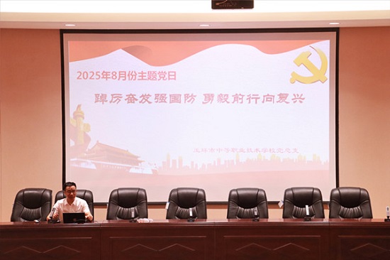 8月29日下午,玉环市中等职业技术学校党总支组织全体党员在B系部楼阶梯教室开展以“踔厉奋发强国防 勇毅前行向复兴”为主题的8月份主题党日活动。此次活动旨在深化国防教育,强化党员责任担当,激发全体党员为学校高质量发展贡献力量的热情。