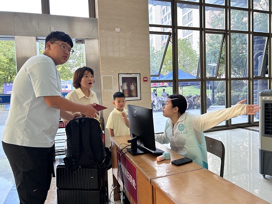 “从下车到完成报到,志愿者一直帮我提行李,还详细介绍了校园布局,特别贴心!”来自东阳的新生王同学感慨道。