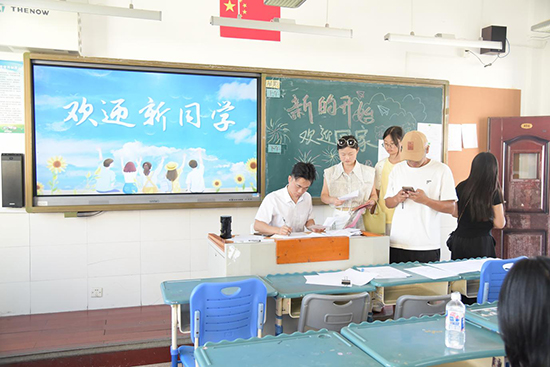 班主任老师们是新生入校后的“第一任导师”,“欢迎你,新同学!”在各个新生教室里,班主任老师们早已做好了充分的准备。有的班级黑板上写满了温馨的欢迎词,有的班级新增了励志的迎新展板,有的班级贴心地准备了小礼物或专业特色产品,让整个教室充满了家的温暖。班主任们耐心地为新生办理报到手续,核验资料,介绍开学注意事项、寝室分布等,面对新生和家长们的各种疑问,班主任们不厌其烦地一一解答,努力消除他们的顾虑。一句句叮咛,一声声嘱托,饱含着班主任对新生的深切期望与无私关爱。