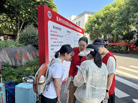 初秋的风掠过良职,满是迎接学生报到的暖意。8月31日,杭州市良渚职业高级中学迎来了2025级新同学。校园内横幅高挂,结合靓丽的展板,处处洋溢着喜庆而热烈的迎新氛围。学校党员教师、学生志愿者以及全体班主任老师等以饱满的热情和周到的服务,共同为新生们铺就了一条温暖顺畅的开学之路。