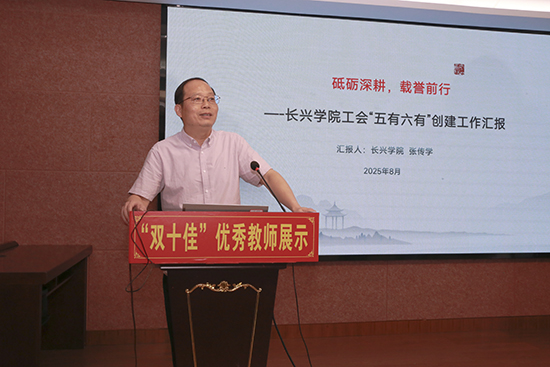 张传学以《砥砺深耕,载誉前行》汇报了学院工会“五有六有”创建历程。从场地优化、台账整理到汇报展示,他与团队精益求精,最终荣获“五星职工文化阵地”与“模范职工之家”双项荣誉。