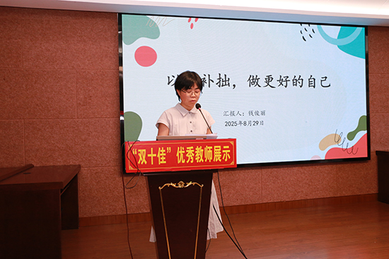 九位“双十佳”优秀教师代表中既有校级领导,也有中层干部,更有一线教师。他们依次登台,作了精彩纷呈的先进事迹分享。他们不仅展现出卓越的工作智慧与教育温度,更传递出砥砺前行、躬耕教坛的榜样力量。