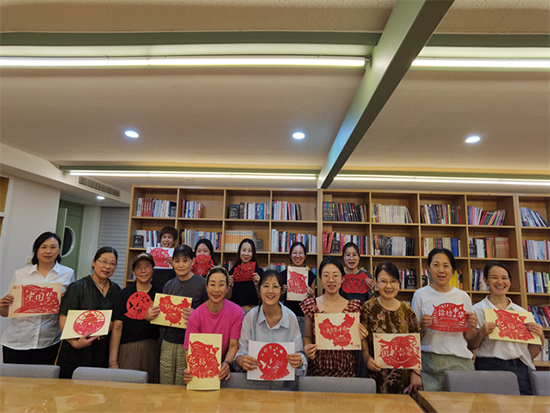 新一期夜校开课当晚,软笔书法、瑜伽、歌咏、非遗剪纸、手工编织五门课程率先与学员见面,课堂氛围热烈。尤其在今年抗日战争胜利80周年的特殊背景下,课程内容更添红色内涵与情感温度。非遗剪纸班以“红色传承”为主题进行作品创作,学员们用剪刀和彩纸勾勒红色故事,在指尖传承红色记忆;歌咏班则选择学习《思乡曲》,学员们通过深情演唱,表达对祖国的热爱以及对海外游子思乡之情的共鸣,让课程在学习技能的同时,也成为传递情感、弘扬正能量的载体。