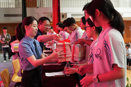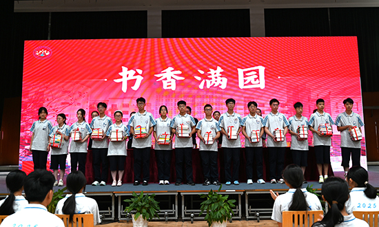 校领导 “授书进班级” 环节温馨开启。领导们将精心挑选的书籍递到学生代表手中。一本本图书,承载着学校对学生的殷切期望 —— 希望同学们在新学期多读书、读好书,在书香中拓宽视野,涵养品格,让知识成为逐梦远方的有力支撑。