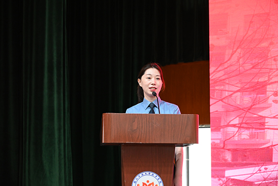 随后,法制副校长张爽发表讲话。她结合校园安全与青少年法治教育,用生动的案例、通俗的语言,为全体师生普及法律知识,提醒同学们要增强法治意识,自觉遵守校规校纪,学会保护自己,同时鼓励大家树立正确的价值观,在法治的护航下健康成长、安心学习。