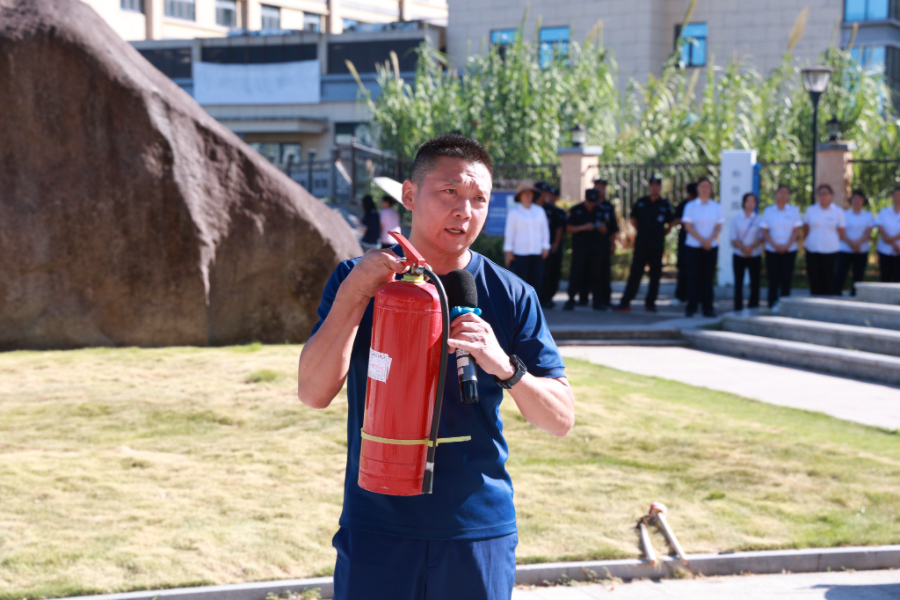 全体人员安全抵达操场后,柳市镇消防队李队长结合校园常见火灾案例,系统讲解了防火常识、火场逃生技巧、报警程序及注意事项,语言生动、内容详实,师生认真聆听、积极回应。随后,李队长现场演示干粉灭火器的正确操作方法,“一提、二拔、三握、四压”每个步骤细致清晰。在教官的指导下,多名学生代表及后勤人员踊跃参与实操演练,成功完成灭火任务,进一步巩固了消防技能。