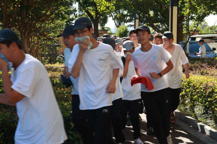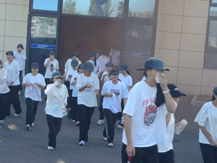 下午,校园内警报声划破宁静,消防演练正式启动。教官迅速在宿舍区多个点位施放环保烟雾弹,橙黄色浓烟沿着楼道迅速蔓延,模拟真实火情场景。学生们立即进入应急状态,低头弯腰,用湿毛巾捂住口鼻,在教官清晰有力的口令和老师们的现场引导下,按照预定路线快速有序疏散。女生从静姝楼分批下楼,穿过和合桥时步伐紧凑却不推挤;男生从宿舍出发,沿食堂前空地快速行进,师生之间呼应有序,彼此提醒“注意脚下”“跟紧队伍”。班主任们守候在楼梯拐角和安全出口,挥动手臂引导方向,不断喊道:“往这边走!”“不要慌,保持距离!”“注意台阶!”整个疏散过程忙而不乱、衔接紧密,展现出师生高度配合的团队意识和训练有素的应急能力。