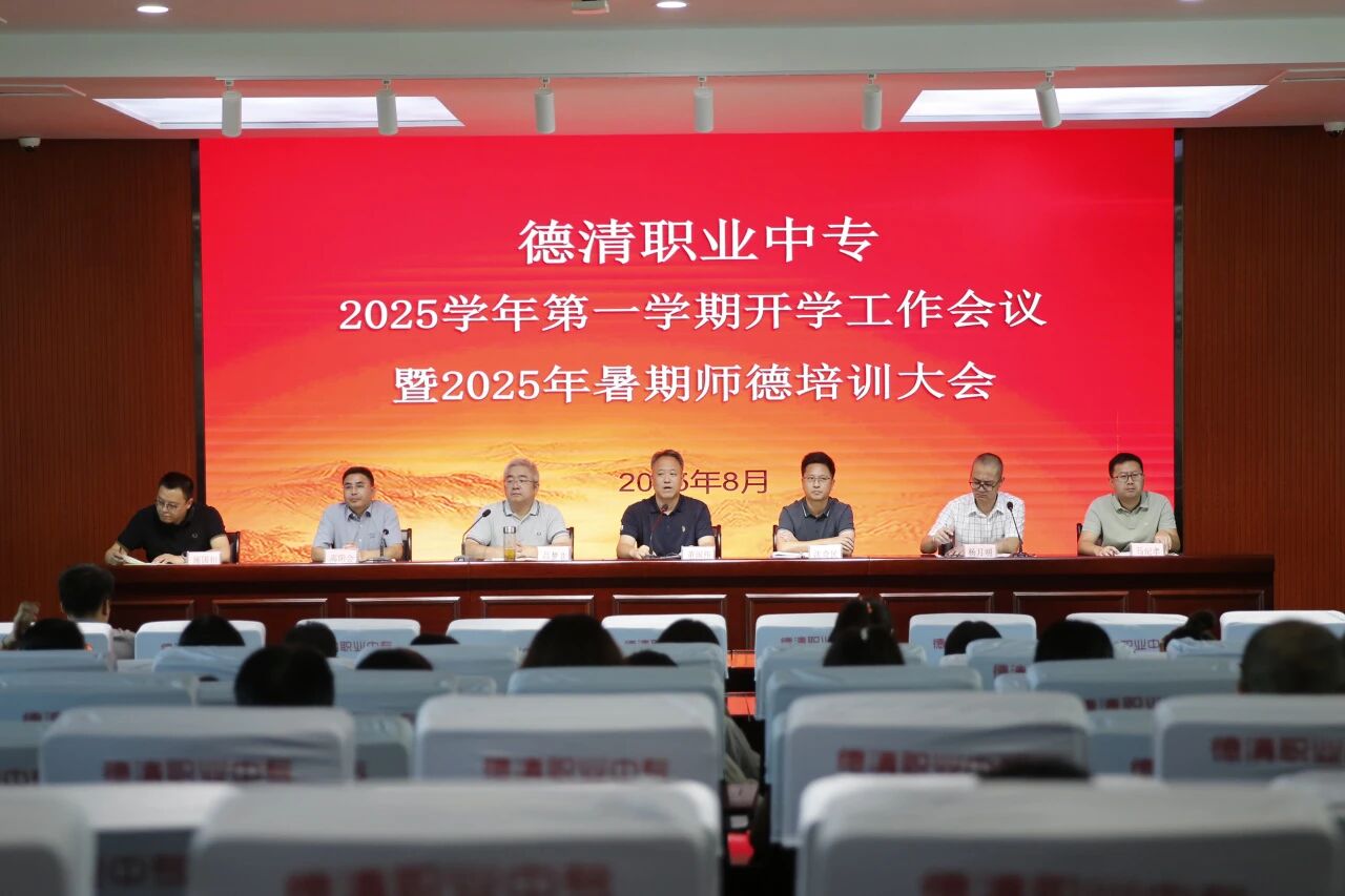 为进一步加强师德师风建设,明确育人使命与责任,统筹部署新学期各项工作,夯实学校高质量发展根基,8月29日上午,德清职业中专召开了2025学年第一学期全体教职工开学工作会议暨暑期师德培训会。 县教育局党委委员、德清职业中专校长董国伟出席会议并讲话,执行校长沈奇民,校党委副书记、副校长吕梦非,校党委委员、副校长杨月明、高阳会,校党委委员马纪孝、施国扣及全体教职工参加。 会议由高阳会主持。