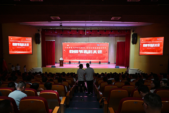 为庆祝第41个教师节,海职高举办表彰大会,以教育家精神铸魂强师,谱写教育强国建设华章。大会由党委副书记、校长陆益飞老师主持。