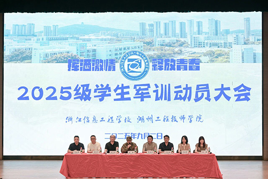9月2日上午,浙江信息工程学校·湖州工程技师学院2025级学生军训动员大会在庄严的国歌声中于大会堂隆重举行。校领导班子、南太湖新区仁皇山街道人武部部长项健、全体新生及班主任、承训教官参加大会,大会由副校长朱晓慧主持。