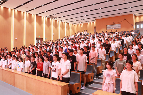 上午9时,开学典礼在庄严的国歌声中拉开帷幕,全体师生肃立,雄壮的歌声回荡在报告厅内,也激荡在每个学子的心中。
