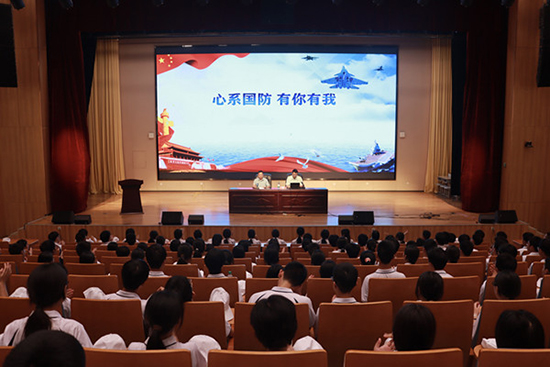 据悉,当天下午,全体新生还开展了一场国防教育学习活动。作为新生军训的重要一环,活动特邀市人武部政治工作科科长朱万玉进行专题授课。班级代表齐聚大报告厅现场聆听,其余同学则通过教室直播同步参与。
