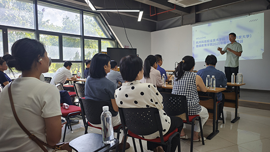 9月8日下午,杭州开放大学组织的2025年骨干教师培训班近30名学员赴慈溪市观海卫镇开展实地调研,深入了解当地社区教育创新实践成果。此次活动聚焦数字化学习、红色文化传承与乡村振兴融合等主题,通过专题讲座、红色基地研学及乡村教育案例考察,为骨干教师提供社区教育发展的鲜活样本。