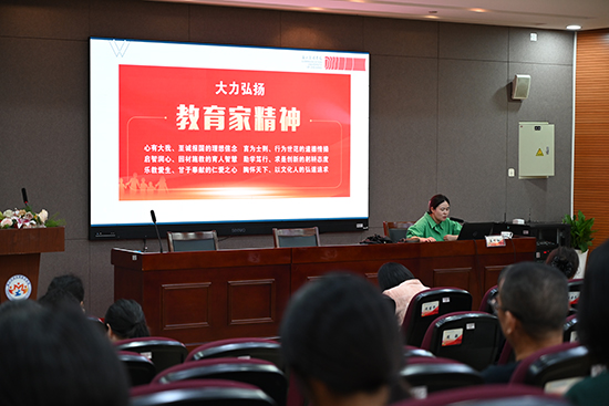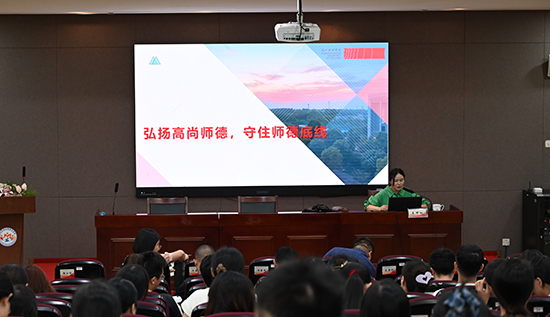 王博士学识渊博,贯通中西。她引经据典,从中国古代经典《礼记・学记》《师说》到国外学者培根、雅思贝尔斯关于师德的论述,从内在修养与外在行为两个维度,深入阐释了师德师风的丰富内涵。期间,王博士分享了一系列真实的反面案例,并结合习近平总书记提出的好老师 “四个标准”,警示全体教师要坚守“三个坚持、三个突出、四个严格、四个强化”的师德底线,筑牢思想防线。讲座最后,王博士还就教育家精神进行了讲解,强调:要坚定理想信念,争做胸怀“国之大者”的典范。