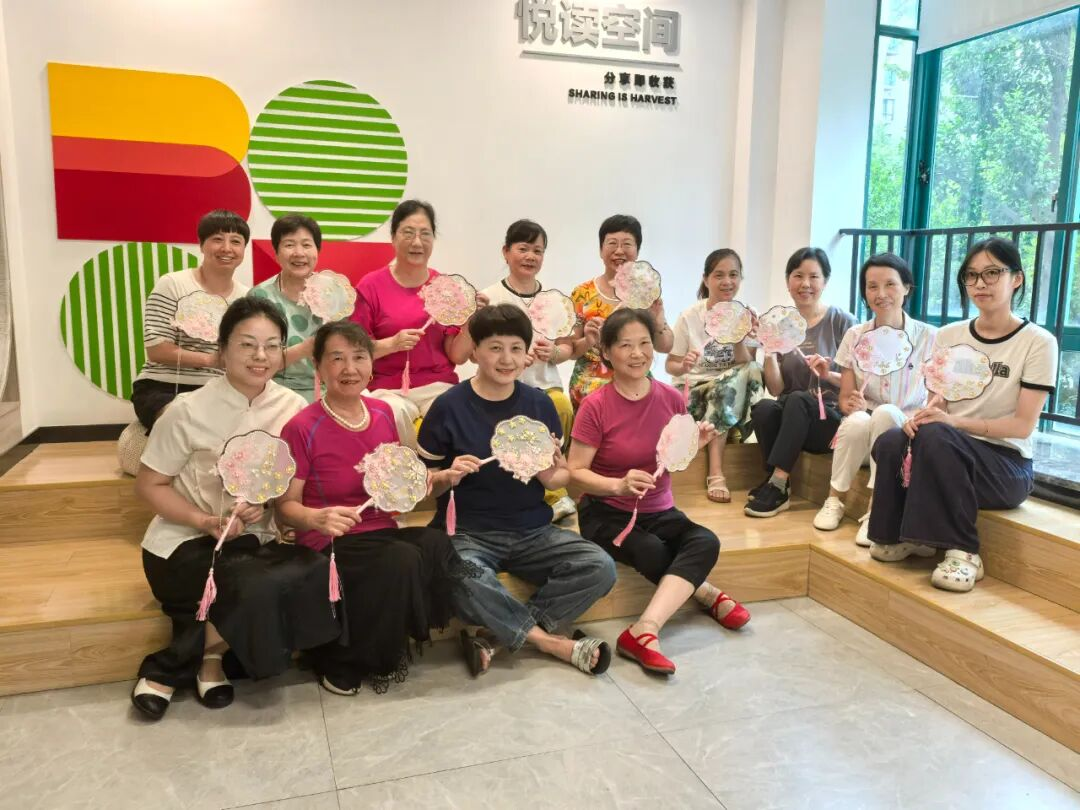 9月10日上午,杭州滨江西兴街道温馨社区老年堂开展了“非遗承古意,一扇传风雅”的非遗团扇制作活动,本次活动吸引了十多位社区居民的热情参与,居民们围坐一堂,用创意与巧思制作属于自己的团扇。