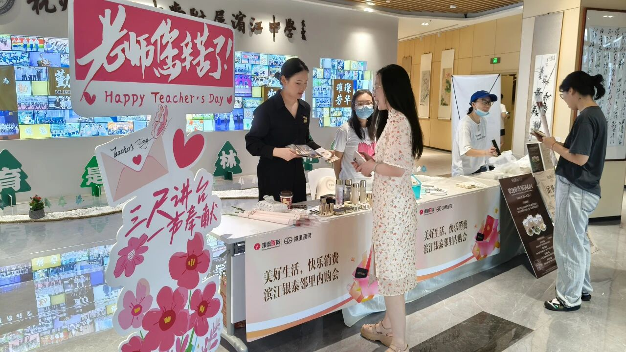 第41个教师节来临之际,杭州滨江西兴水电社区联合滨江银泰在辖区的共建单位杭高滨江中学开展“情暖教师节·服务进校园”活动,将贴心服务与专属福利送到教师身边,致敬辛勤园丁。