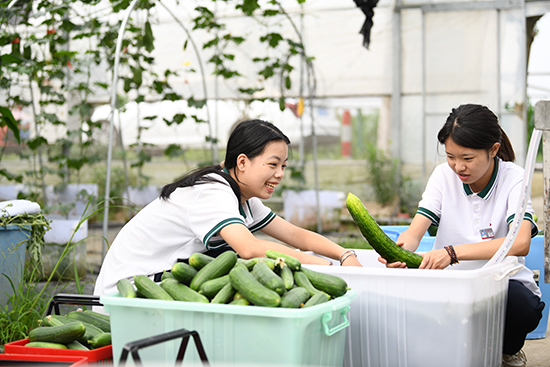 农业班学生陈雨欣说:“以前在田园基地学技术,现在跟着知名乡村CEO刘松在田地里学运营、搞策划,把自己家乡建设成全国乡村振兴模板村,太自豪了!”