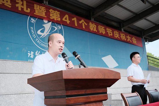 俞杭明校长代表学校向全体师生致以新学期的问候,向全体教师致以节日的祝福!俞校长回顾了上一学年学校在各方面取得的优异成绩,并对同学们提出新学年期望:以品格为底线,做一个大写的人;以技能为标线,做一个有一技之长的人;以信念为航线,做一个有家国情怀的人;以学业为基线,做一个努力学习的人;以健康为主线,做一个健康快乐的人。最后,俞校长祝愿全校师生以欢乐和活力开启学年新征程。