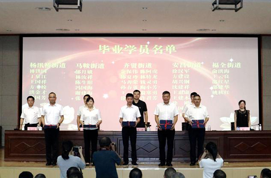 随后,16位镇街学员代表分批上台领取证书,6位学员获评“校优秀毕业生”并接受表彰。