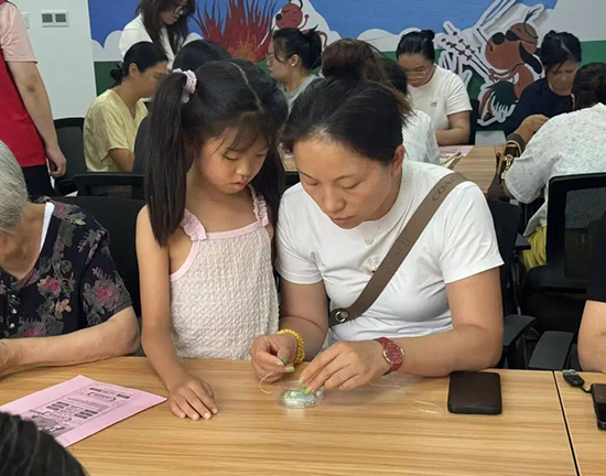 现场气氛热烈,欢声笑语不断。大家互相交流制作心得,分享配色灵感,一颗颗精致的珠子在指尖流转,渐渐串成了一条条美丽的手链。有的居民为家人制作了寓意平安的幸运手串,有的为自己设计了时尚个性的搭配,每一件作品都蕴含着制作者的巧思与情感。学员们感叹:“平时很少有机会做手工,今天不仅学会了新技能,还认识了新朋友,真的很开心!”“社区经常组织这样有意义的活动,让我们的生活更加丰富多彩,希望以后还能参加更多类似的活动。”