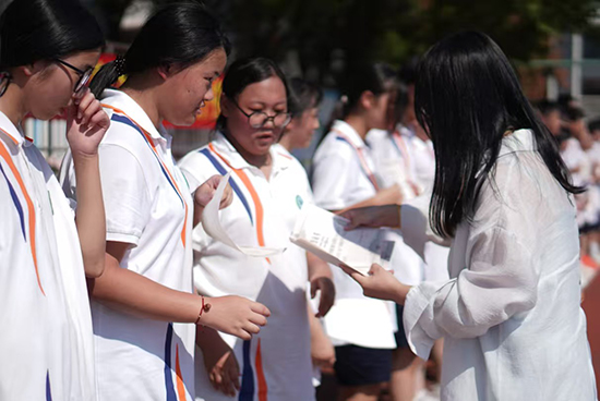 学生代表园林技术2501赵梓涵同学上台发言,他向倾心付出的校领导、悉心指导的教官和日夜陪伴的老师们致谢,并表示将在未来的高中学习生活中继续发扬军训中收获的刻苦精神,坚韧勇敢,奋勇拼搏。