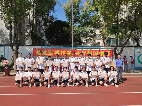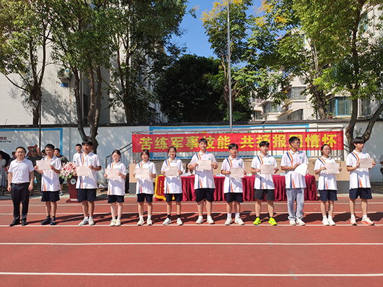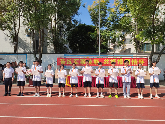 最后,王早荣对同学们在军训中的优异表现表示祝贺,希望同学们继续发扬严谨扎实、坚毅刚强的军训作风,在接下来的学习生活中,坚定理想信念、铸就鸿鹄之志,用梦想指引青春航向;加强道德修养、锤炼高尚品格,用真才实学续写青春故事。