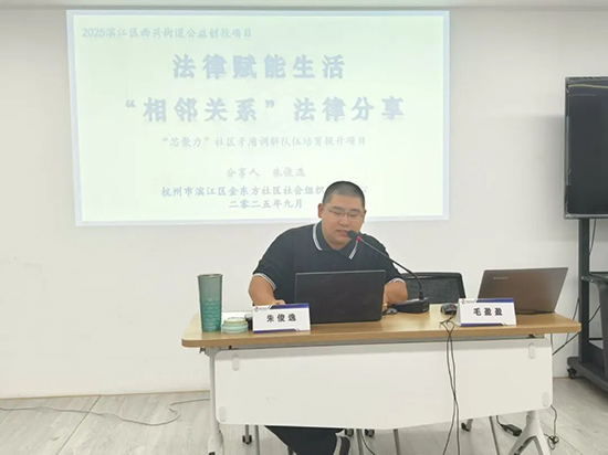 9月15日,杭州市滨江区西兴街道金东方社区老年学堂成功举办了一场以“邻里关系”为主题的普法讲座,特邀专业律师朱俊逸担任主讲人。